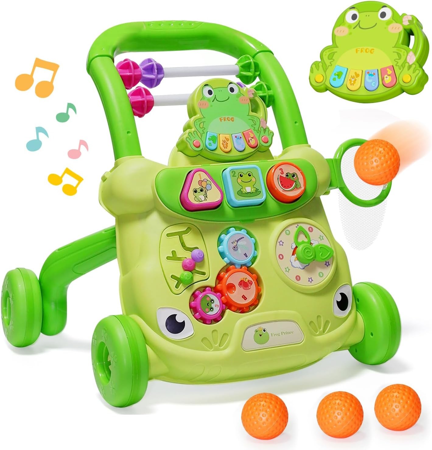 (1) Water/Sand Tank Base for tip-resistant support (push walker for babies 12-18 months). (2) Lockable Rear Wheels convert to stationary play. Essential for walking toys for 1 year old learning to walk and push toys for toddlers 1-3.