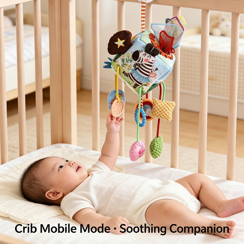 | Material | Polyester plush, crinkle paper, plastic squeaker, plastic rattle bell, acrylic mirror, food-grade silicone teether, plastic beads, nylon straps |