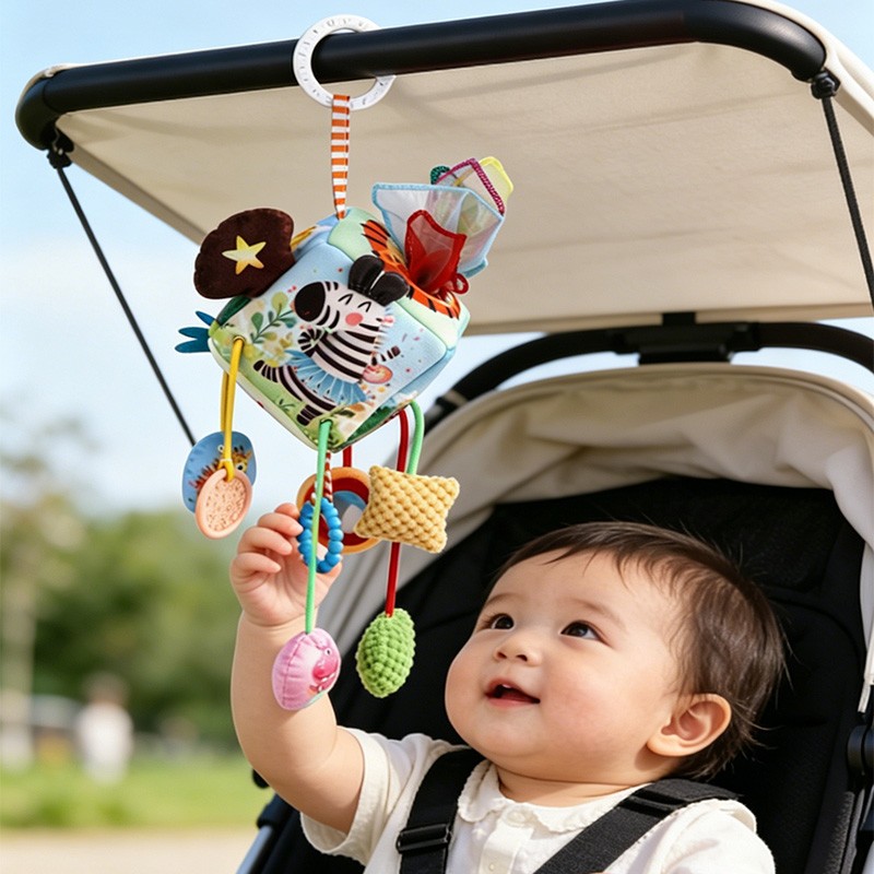 Emotional soothing – Engaging sounds and textures distract and calm fussy babies, ideal for car rides or stroller walks.