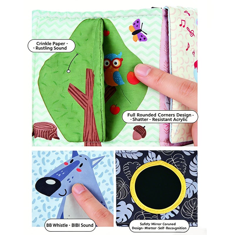 | Material | Peach skin fabric, high-elastic PP cotton, food-grade silicone teether, acrylic mirror, crinkle paper |