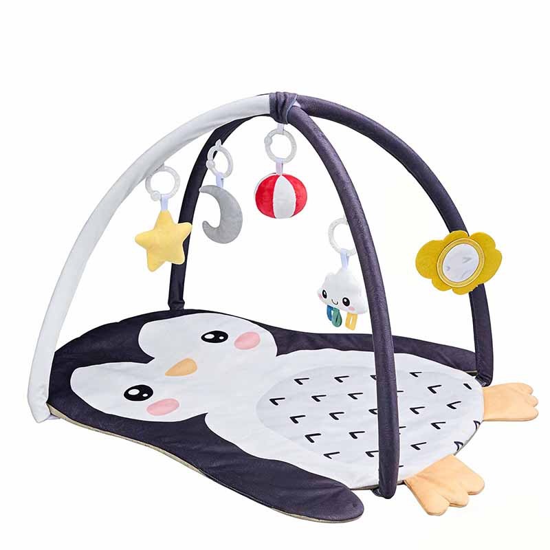 Designed for newborns to 12 months, this adorable penguin-shaped activity mat combines a soft play mat and a detachable gym in one. Features a super-soft coral fleece top, anti-slip plastic base, and 5 interactive hanging toys. Perfect for wholesale buyers and brands seeking OEM customization.