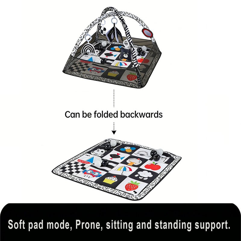 | Material | Polyester fabric, breathable mesh, high-elastic PP cotton fill, Fiberglass arch, non-toxic plastic crinkle/rattle/squeaker, acrylic mirror, PE balls |
