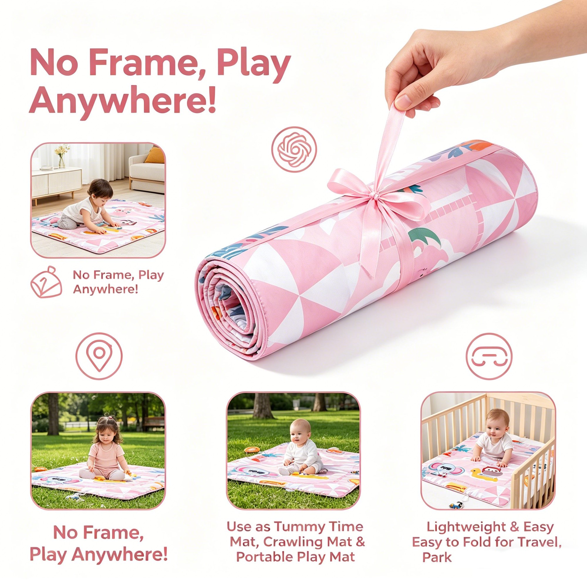 Crawling Mat Mode: Use the flat mat alone for rolling, scooting, and crawling practice.
