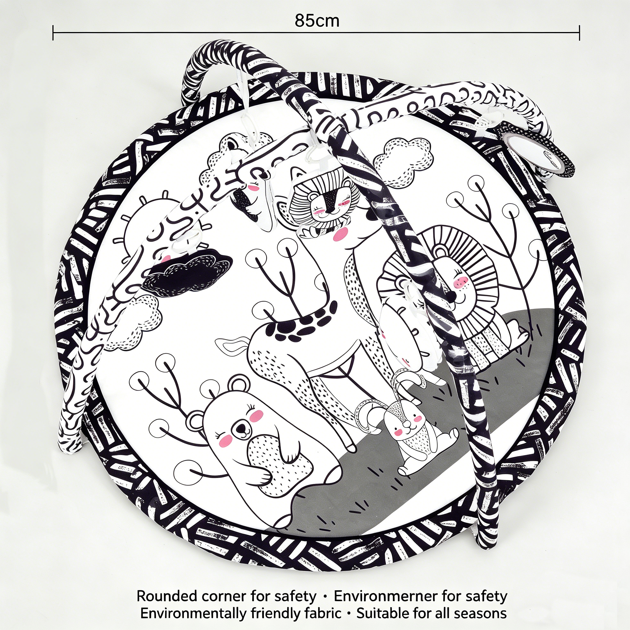 | Product name | Tiny Paws Black White Forest Animal Round Baby Play Gym |