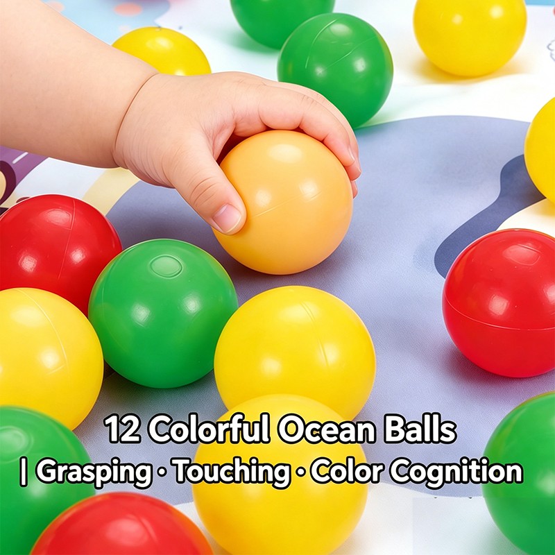 Gross & fine motor skills – Reaching, grasping, pressing squeaker, and ball pit play strengthen muscles.