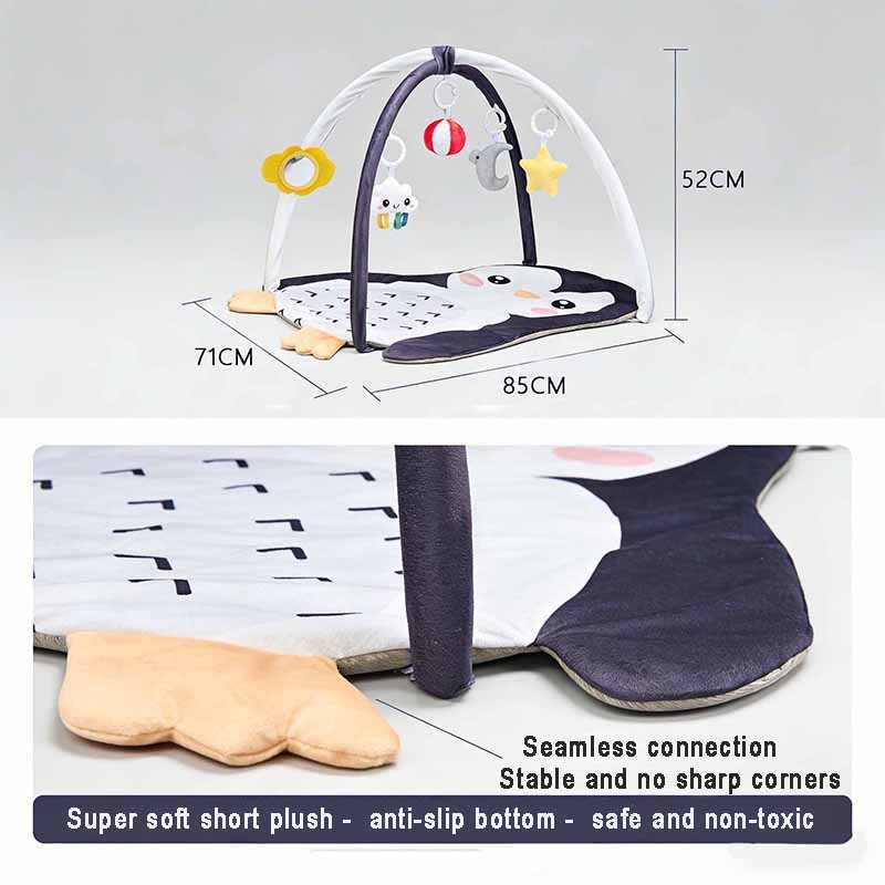 Designed for newborns to 12 months, this adorable penguin-shaped activity mat combines a soft play mat and a detachable gym in one. Features a super-soft coral fleece top, anti-slip plastic base, and 5 interactive hanging toys. Perfect for wholesale buyers and brands seeking OEM customization.