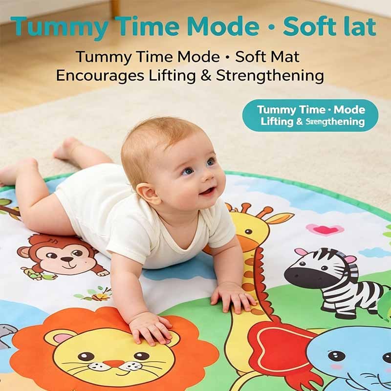 Mode 2: Tummy Time Mat – Remove arches and toys. Use only the padded mat for tummy time practice. Ideal for 1-8 months.
